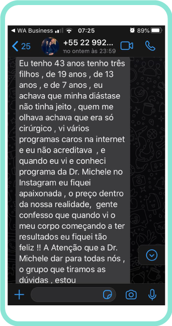 Você ter acesso a um grupo de whatsApp com mães que estão fazendo o programa junto com você e com uma mãe que teve grandes resultados para não te deixar desistir. Lá você vai ser inspirada pelos resultados de outras mães e vai poder inspirar outras mães.