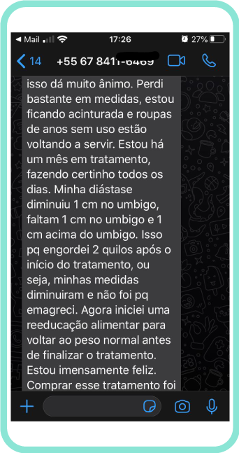 Por isso eu criei um Programa completo de acompanhamento para tratamento da Diástase, que além dos vídeos ensinando a fazer os exercícios em casa, você ainda vai ter suporte da minha equipa de profissionais avaliando você através de fotos e medidas e correções de exercícios através vídeos.